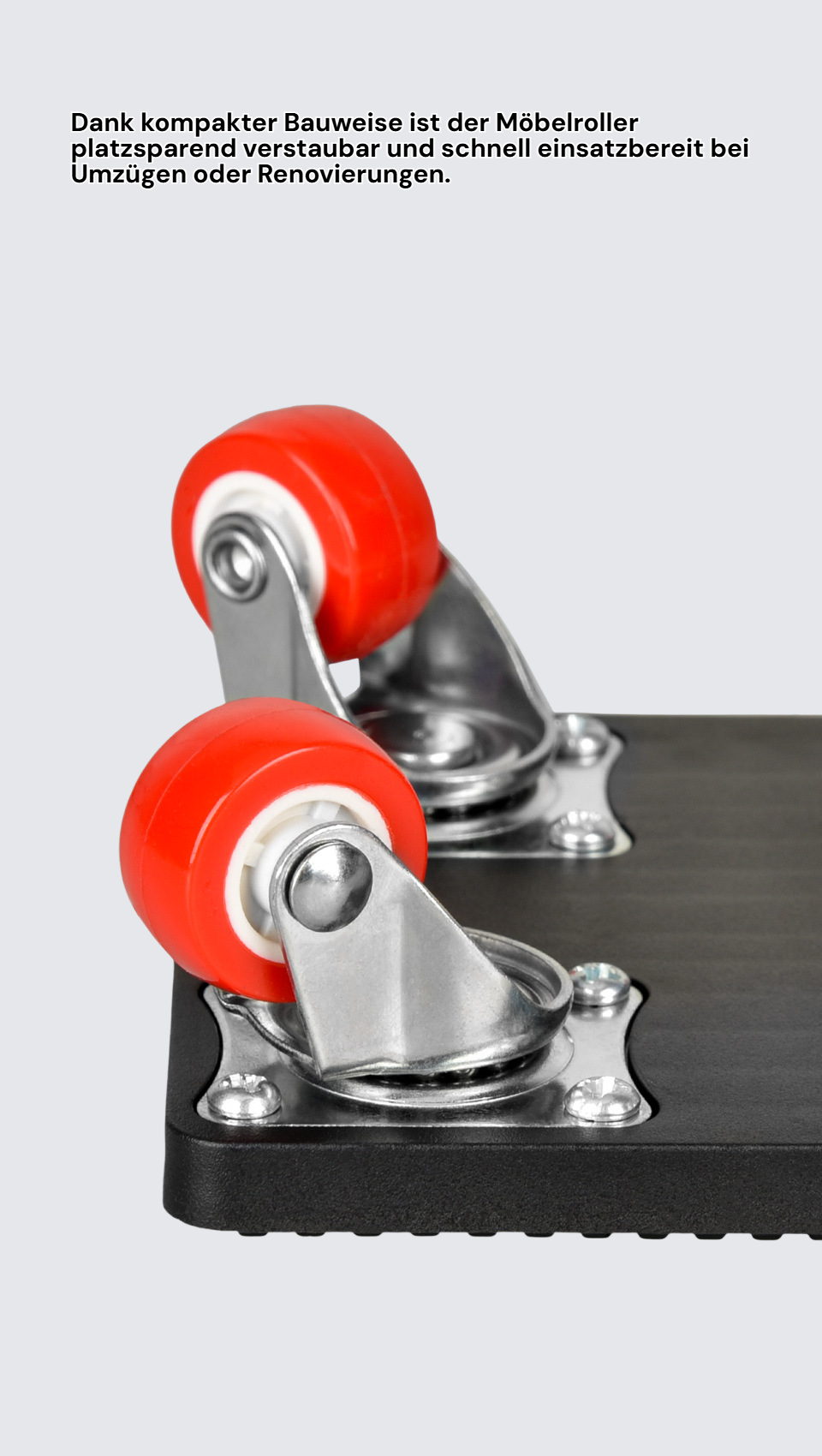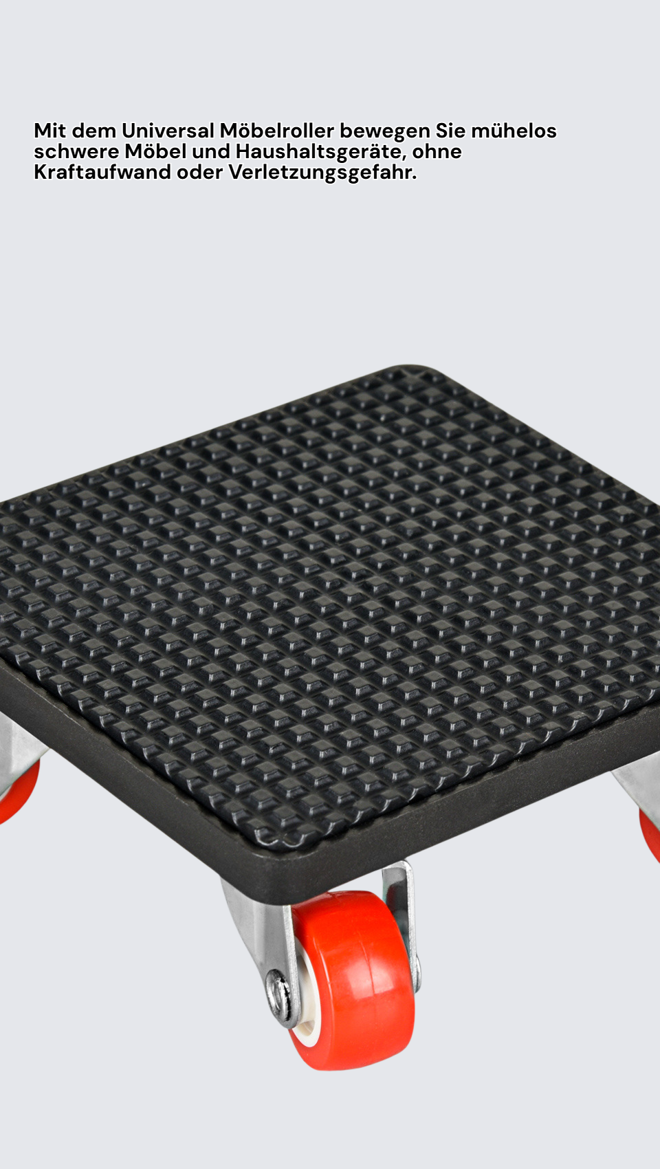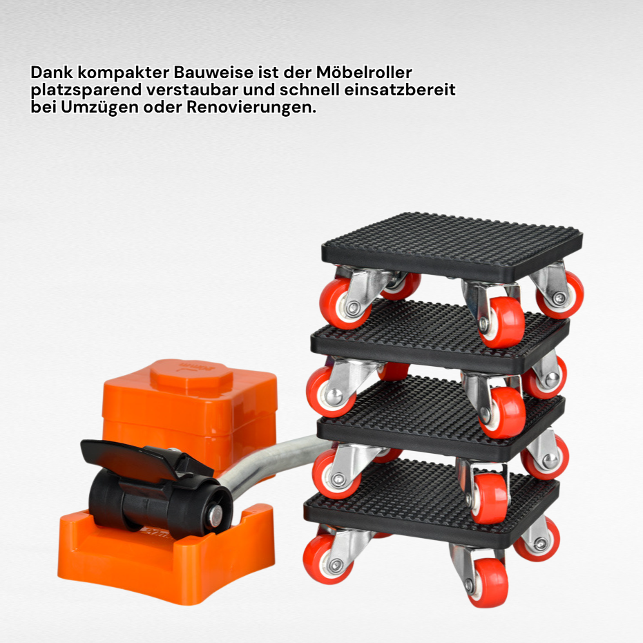 ● Mit dem Universal Möbelroller bewegen Sie mühelos schwere Möbel und Haushaltsgeräte, ohne Kraftaufwand oder Verletzungsgefahr. ● Die robuste Konstruktion und hochwertigen Rollen sorgen für langlebige Nutzung und sicheren Transport auf verschiedenen Bodenbelägen. ● Dank kompakter Bauweise ist der Möbelroller platzsparend verstaubar und schnell einsatzbereit bei Umzügen oder Renovierungen. ● Die rutschfeste Oberfläche garantiert stabilen Halt der transportierten Gegenstände und schützt Ihre Möbel vor Kratzern und Beschädigungen.